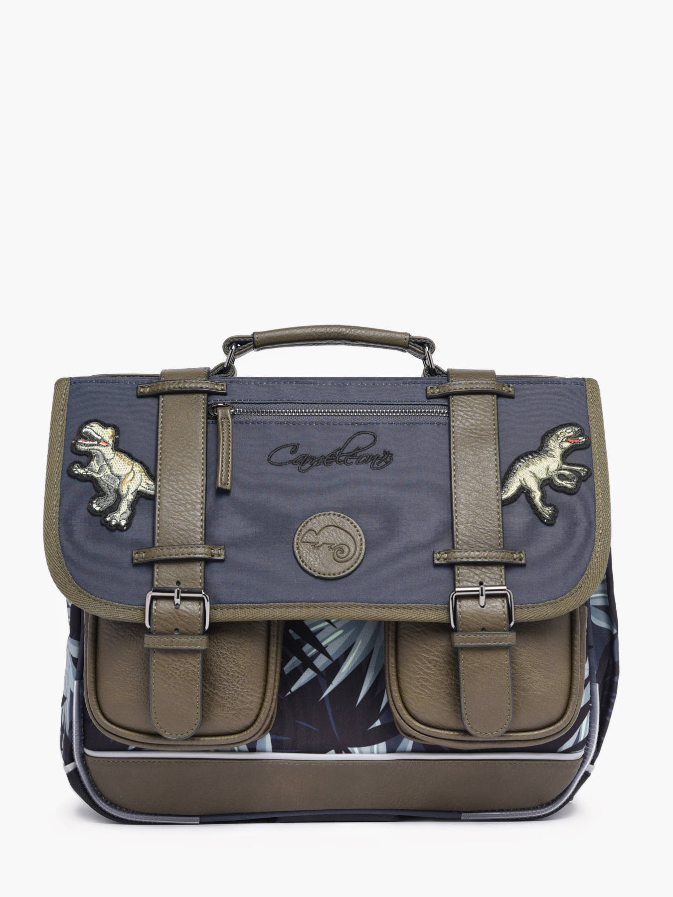 35 cm - 12 liter - 1 kg ~ Deze schooltas uit de Vintage collectie van het merk Caméléon heeft een breedte van 35 cm. Ideaal voor die eerste ontdekkingstocht naar de basisschool! Dit model heeft een duidelijke vintage look, dankzij de twee voorvakjes en de riempjes met gesp. Dit model beschikt over twee compartimenten, die schriftjes (24x32 cm) en andere kleine spulletjes kunnen bevatten. Onder de overslagflap bevindt zich ook een uniek opbergvak, met daarin een gratis liniaal! De twee vakjes met rits vooraan zijn ideaal om een snack of zakdoek in op te bergen. Dit model beschikt ook over een naamlabel, en kan makkelijk gesloten worden dankzij een dubbel kliksysteem. Voor optimaal comfort zijn de rugzijde en schouderbandjes extra gewatteerd. Dankzij enkele reflectoren kan uw kind zich ook veilig in het verkeer begeven. Vintage op z'n mooist!