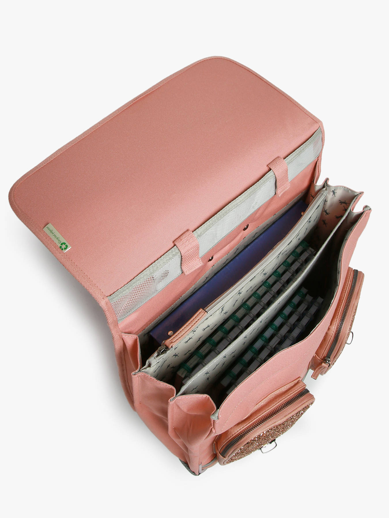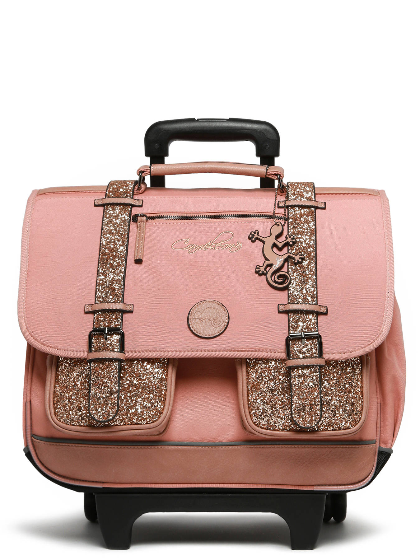 41 cm - 31 liter - 2.6 kg ~ Deze 41 cm trolley-schooltas met drie vakken uit de Vintage Fantasy-lijn van Caméléon is ideaal voor groep 5 en 6. We houden van deze schooltas vanwege de grote opbergruimte: hij heeft drie vakken waarin schriften en ordners tot 32x29x7 cm passen. Ook is er een binnenvak met ritssluiting. Aan de buitenkant zijn er twee voorvakken met ritssluiting en een zijvak voor een drinkfles. Voor de veiligheid van uw kind is er een reflecterende strip aan de voorkant aangebracht. De bodem en zijkanten zijn verstevigd, wat zorgt voor dagelijks gebruiksgemak. De tas kan ook als rugzak worden gedragen dankzij afneembare schouderbanden die in het achtervak opgeborgen kunnen worden, en een gewatteerde beschermlaag bij de wielen om de rug van uw kind te beschermen. Voor optimale ondersteuning zijn de schouderbanden en de rug gewatteerd. Als extraatjes heeft deze schooltas een naamlabel, een gratis liniaal en een Caméléon-sleutelhanger aan het handvat!