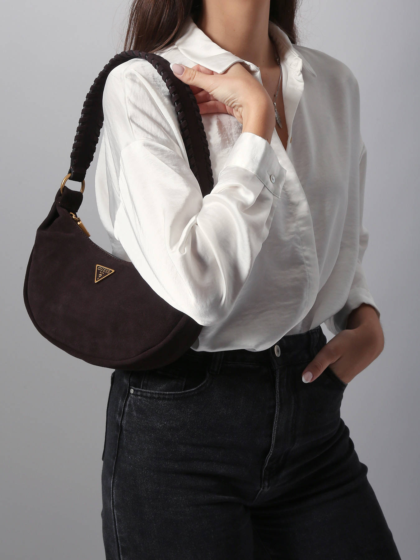 De cross body tas Amita van Guess, vervaardigd uit hoogwaardig rundleer, combineert elegantie, moderniteit en functionaliteit voor een verfijnd dagelijks gebruik. De ritssluiting beveiligt uw persoonlijke spullen en voegt een vleugje klasse toe aan het strakke, eigentijdse ontwerp. Veelzijdig en comfortabel kan de tas crossbody worden gedragen dankzij de hengsel van 30 cm, wat bewegingsvrijheid en gebruiksgemak biedt. De binnenkant bestaat uit een hoofdvak, een ritsvak en drie vakjes voor bankkaarten, zodat u uw essentials zoals telefoon, portefeuille en sleutels netjes kunt opbergen. Compact maar praktisch, overtuigt de Amita met haar moderne lijnen, verzorgde afwerking en soepel leer met een aangename textuur. Deze tas wordt al snel een onmisbaar accessoire in uw garderobe — perfect om uw stedelijke of casual outfits aan te vullen met stijl en verfijning, terwijl ze een vleugje tijdloze elegantie toevoegt aan uw dagelijkse look.