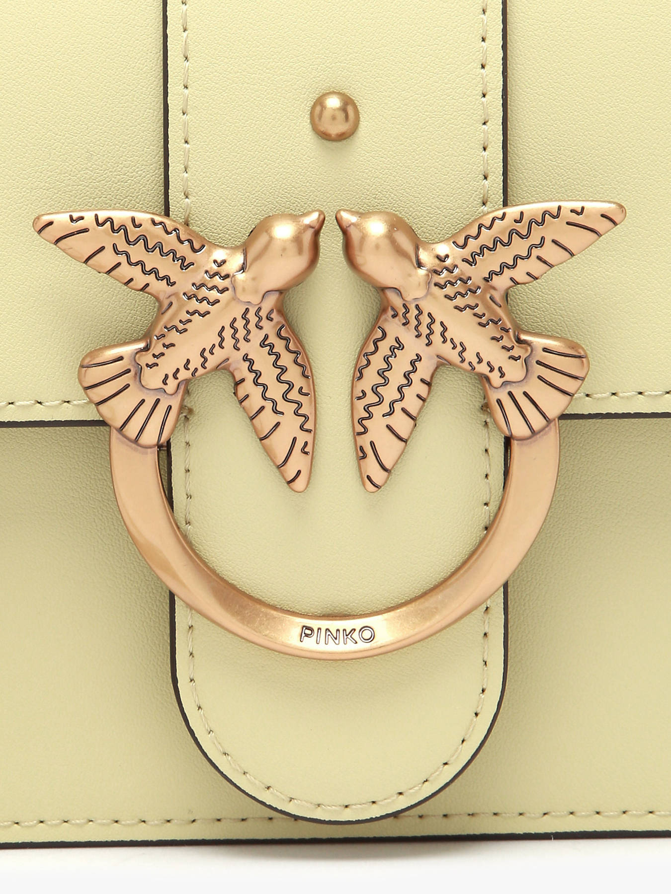 Deze Mini Love One cross body tas van Pinko bezorgt elke outfit een glamoureuze touch! Deze compacte cross body tas is gemaakt van glad rundsleer, en werd afgewerkt met zilverkleurige studs en de iconische ""Love Birds""-sluiting van het merk. Binnenin zijn twee compartimenten voorzien, gescheiden door een plat middenvakje met rits. Zo kunt u uw spulletjes veilig en overzichtelijk opbergen. De chain schouderriem is verstelbaar met gesp, en kan gekruist of lang over de schouder gedragen worden.