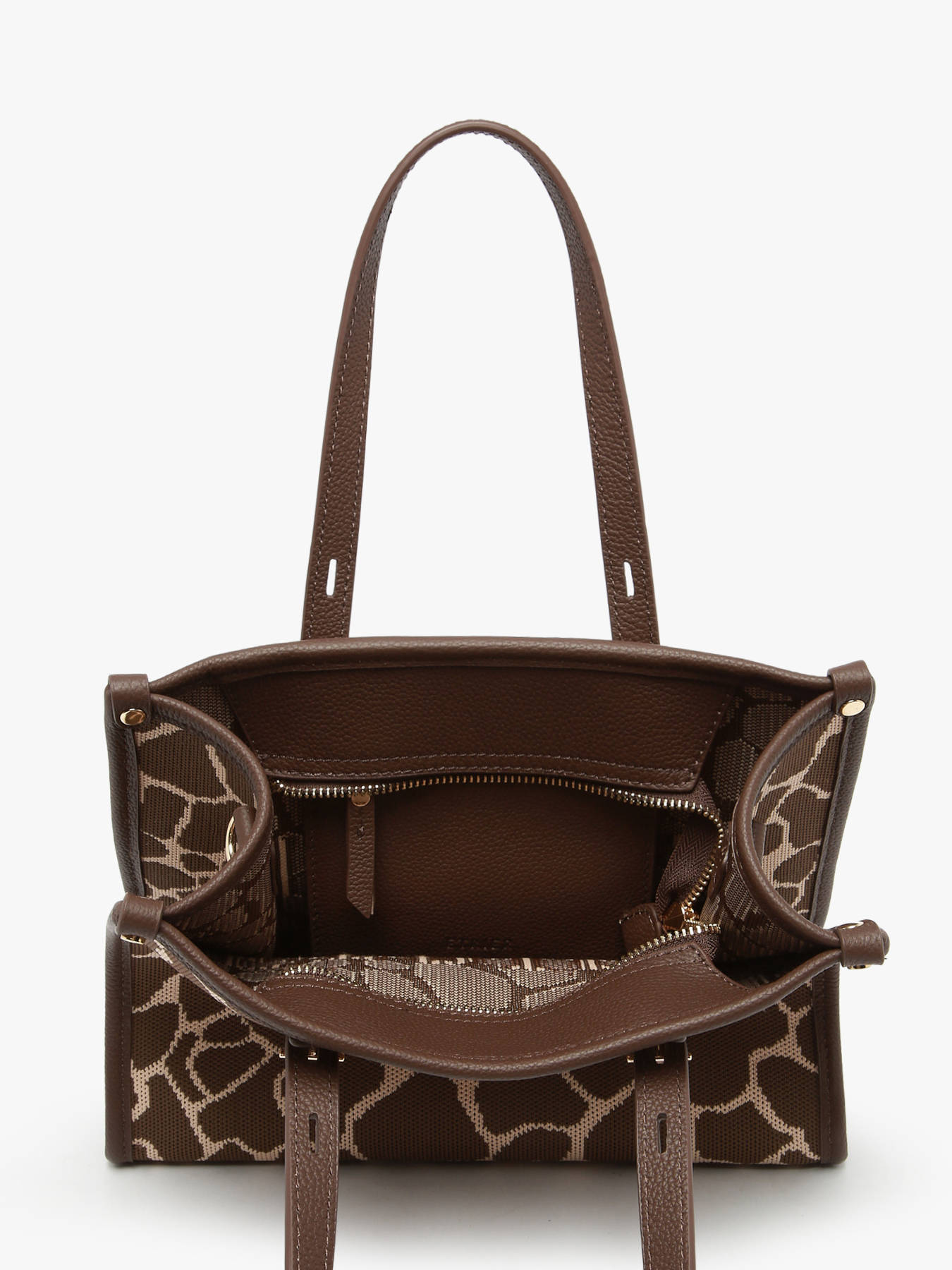 De mini cabas SAFARI van ETRIER vertaalt de gedurfde spirit van de lijn naar een compact en resoluut trendy formaat. Gemaakt van textiel en afgewerkt met leren details, onderscheidt hij zich door grafische dierenprints die zorgen voor een sterke en moderne stijl. Praktisch en licht, dit model in maat S draag je in de hand dankzij de handvatten van 16 cm of als cross body tas met de verstelbare en afneembare schouderriem, zodat hij zich aanpast aan al je wensen. De ritssluiting zorgt voor de veiligheid van je essentials, terwijl een binnenvak met rits een georganiseerde opbergruimte biedt. Een stijlvolle en functionele mini cabas, ideaal om je zomerse dagen te begeleiden met karakter en elegantie.