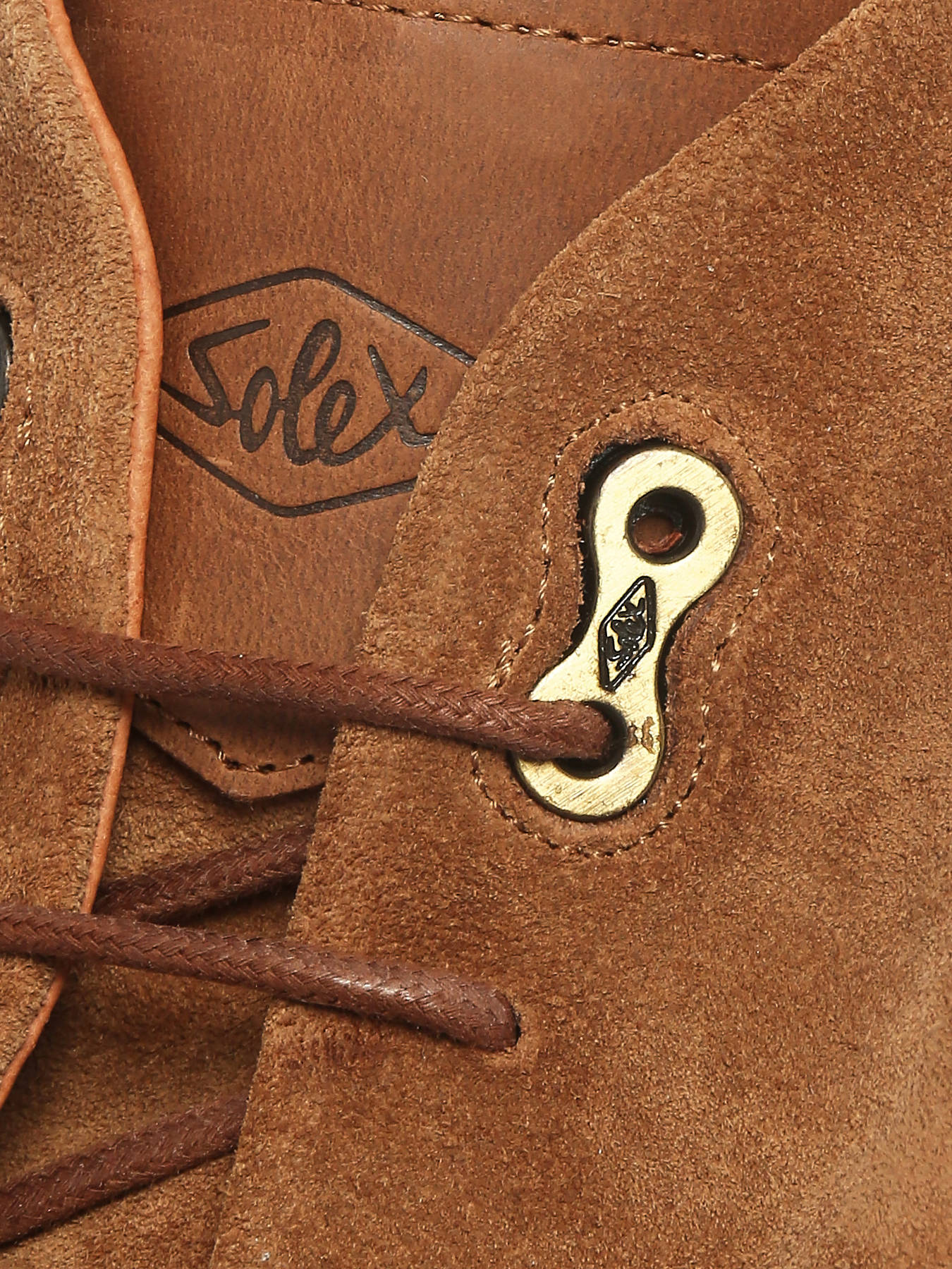 De Plateau Suède S3808 boots van SOLEX, verkrijgbaar in cognac of kaki, combineren comfort, stijl en robuustheid voor een moderne en tijdloze look. Gemaakt van hoogwaardig suède met een volledig leren voering bieden ze zachtheid en ondersteuning de hele dag door. Met gewaxt katoenen veters, onzichtbare metalen oogjes, een Solex-logoschakel en een warmgestempeld merkteken op de hiel onderscheiden ze zich door hun verfijnde details en de duurzame Gum-zool. De “Bourlet”-stikking voegt een elegante, ambachtelijke vleugje toe. Gemakkelijk te combineren met al je outfits, zijn deze boots ideaal voor wie comfort, mode en verfijning wil combineren. Ze vallen licht groot uit — kies bij voorkeur een maat kleiner.