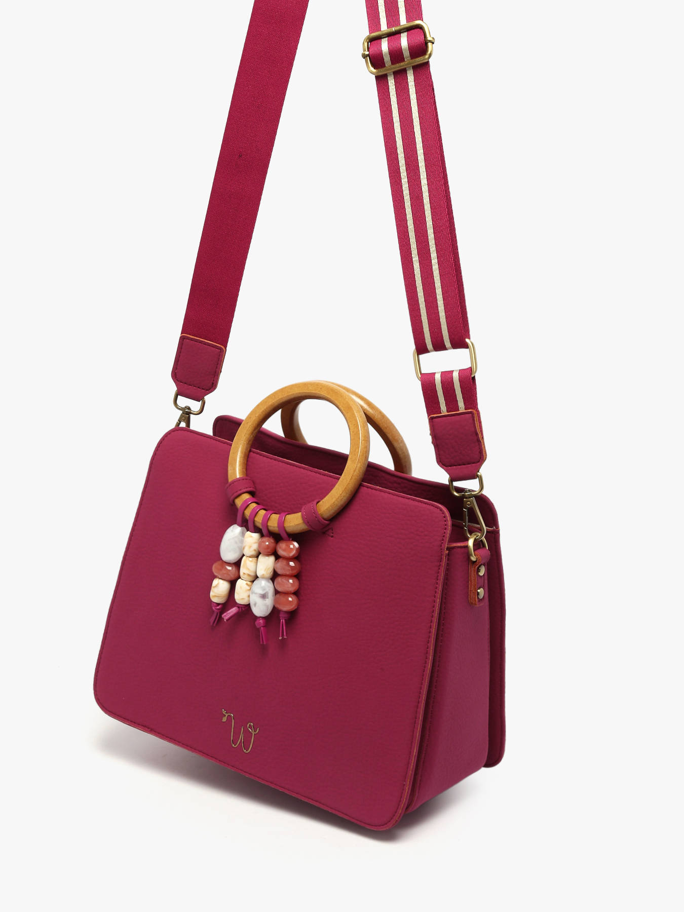 De handtas WOOMEN formaat M uit de lijn Camomille Pearl valt op door zijn delicate parelfranjes, gecombineerd met houten ringen, voor een moderne en verfijnde landelijke uitstraling. Gemaakt van polyurethaan met 58% gerecyclede materialen en een voering van katoen en linnen, biedt hij lichtheid en stevigheid voor dagelijks gebruik. De drie compartimenten, waaronder één met ritssluiting, het binnenste ritsvak en de voor- en achtervakken, zorgen voor optimaal opbergen van je persoonlijke spullen. De iriserende, verstelbare en afneembare band maakt het mogelijk de tas aan de hand of op de schouder te dragen, afhankelijk van je voorkeur. Het gouden resinelogo en het nieuwe onderscheidende logo geven een eigentijds en elegant vleugje. Met zijn verzorgde afwerking en pareldetails wordt deze tas een uniek, praktisch en stijlvol accessoire, dat al je outfits complementeert, van casual tot gekleed.
