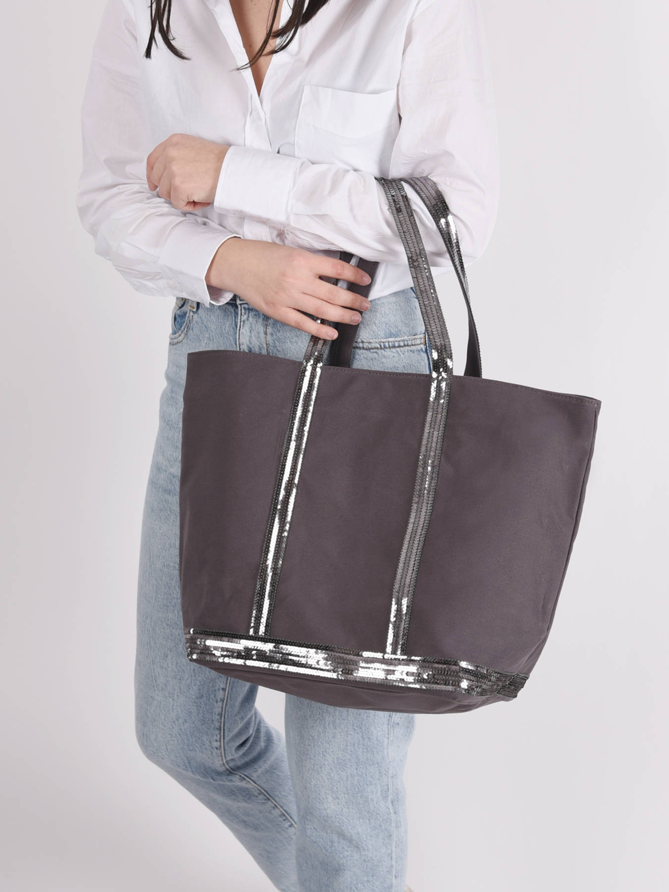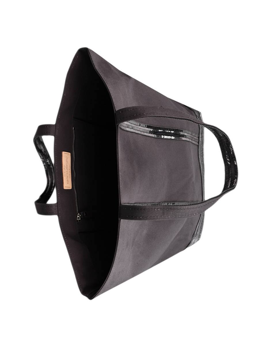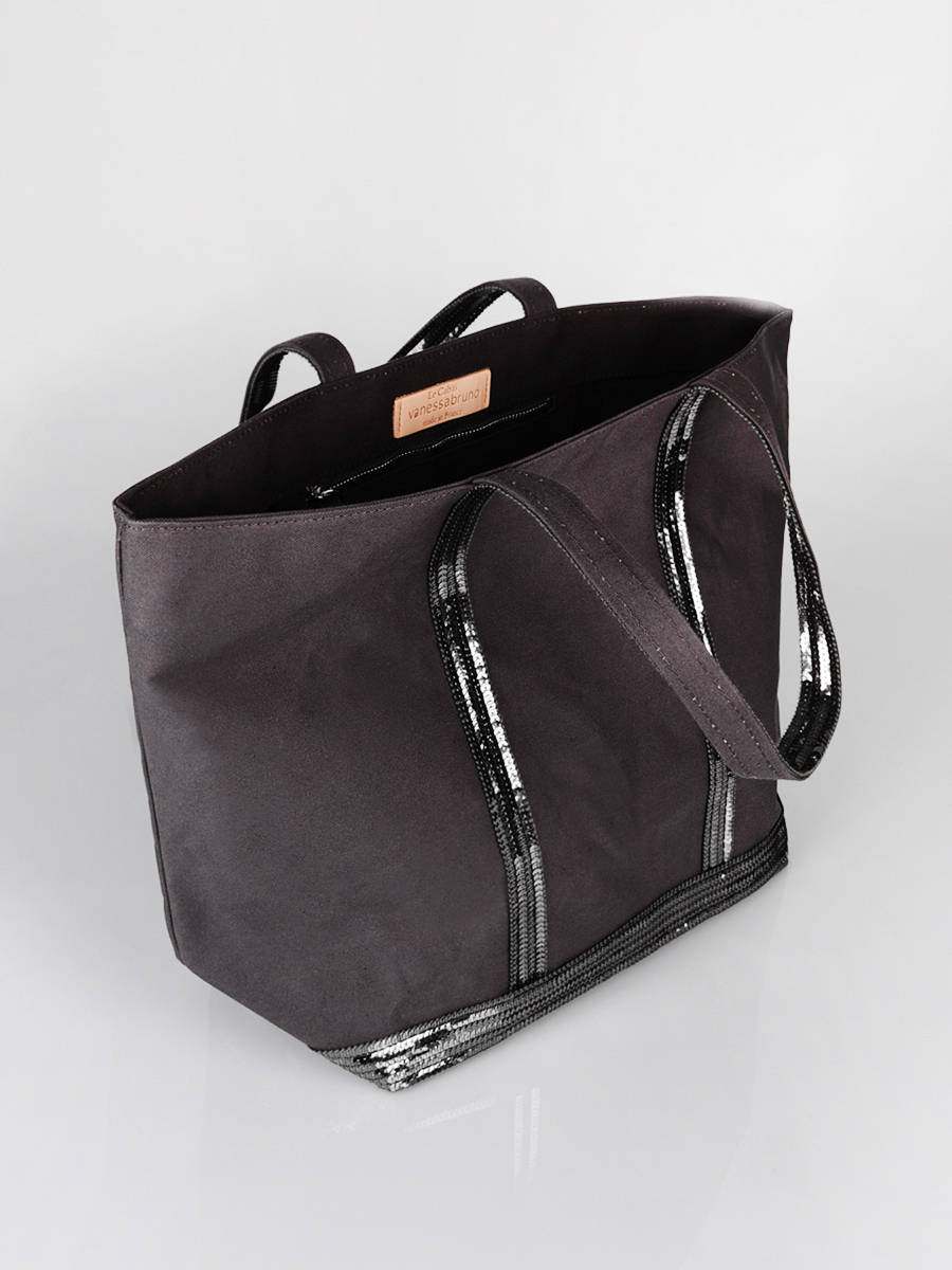 Ontdek hier het nieuwe Le Cabas model van het Franse topmerk Vanessa Bruno, gemaakt van een zeer resistent katoen en afgewerkt met glinsterende pailletten. Dit ""Medium ++"" model kan ook gebruikt worden als schooltas of om te gaan werken. Draag deze Vanessa Bruno tas in de hand of op de schouder, aan jou de keuze! Binnenin is een ritsvakje voorzien voor kleinere essentials. Op het etiket binnenin staat volgende opdruk: ""Le Cabas Vanessa Bruno Made in France"".