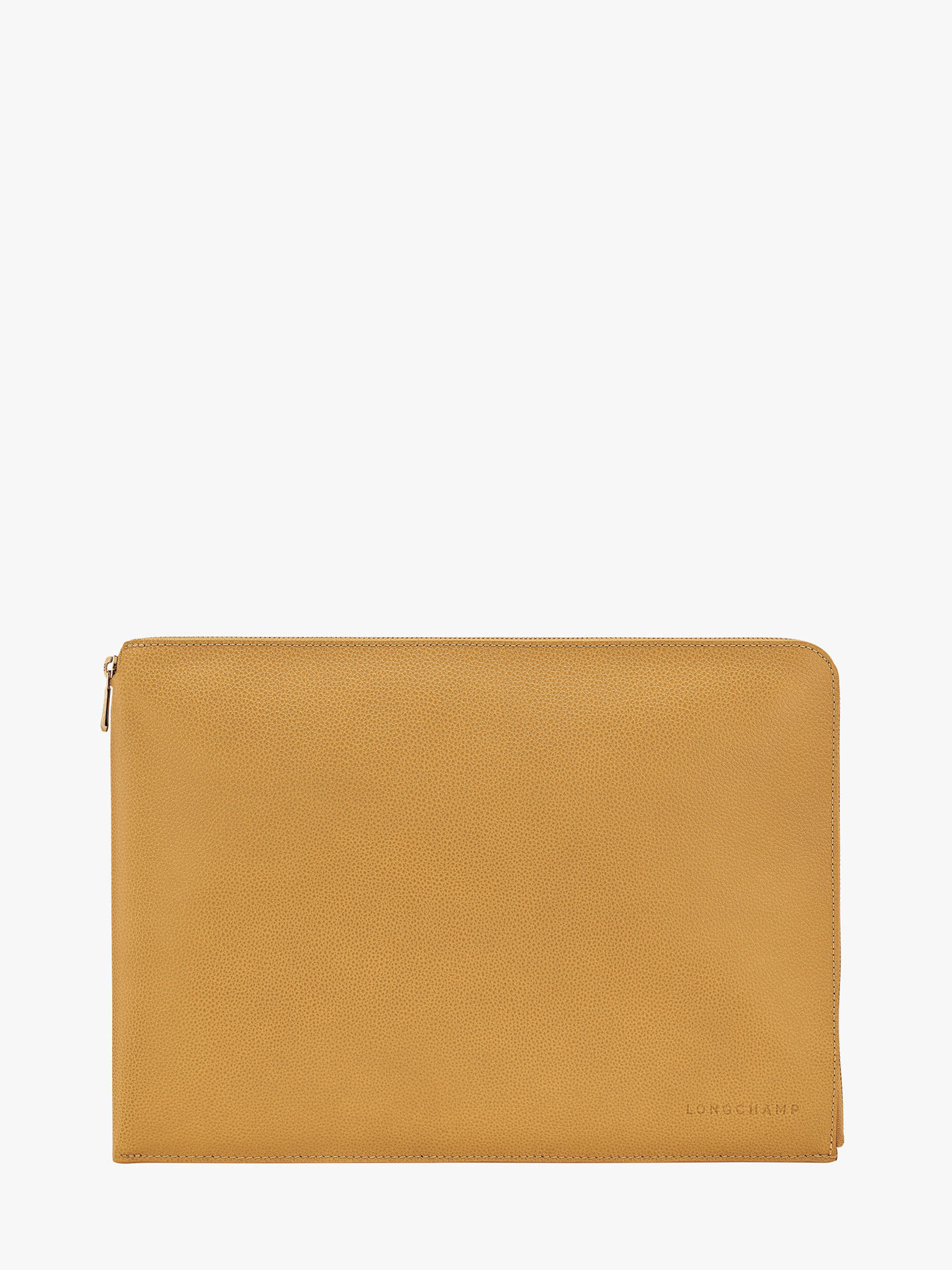 Door strak design en functionaliteit te combineren, is de Le Foulonné laptophoes het ideale accessoire om je laptop tot 13,3"""" en je A4-documenten veilig te vervoeren. Ontworpen voor praktisch dagelijks gebruik, beschikt hij over een ruim hoofdcompartiment en drie open vakken om je accessoires en persoonlijke spullen te organiseren. Geďnspireerd op de iconische Le Foulonné-lijn, onderscheidt deze uniseks hoes zich door zijn gracieus gevormde rondingen, zachte, afgeronde silhouet en signature structuur, symbool van een sobere en tijdloze stijl. Verkrijgbaar in meerdere neutrale kleuren, past hij bij alle stijlen en gelegenheden, of het nu op kantoor, bij zakelijke afspraken of onderweg is. De kwaliteit van het rundsleer en de verfijning van de afwerkingen, zoals de gesp geďnspireerd op stijgbeugels, getuigen van het vakmanschap van het Huis. Deze hoes belichaamt elegantie, praktisch nut en moderniteit, en biedt een accessoire dat zowel chic als functioneel is, trouw aan de geest van de Le Foulonné-collectie.