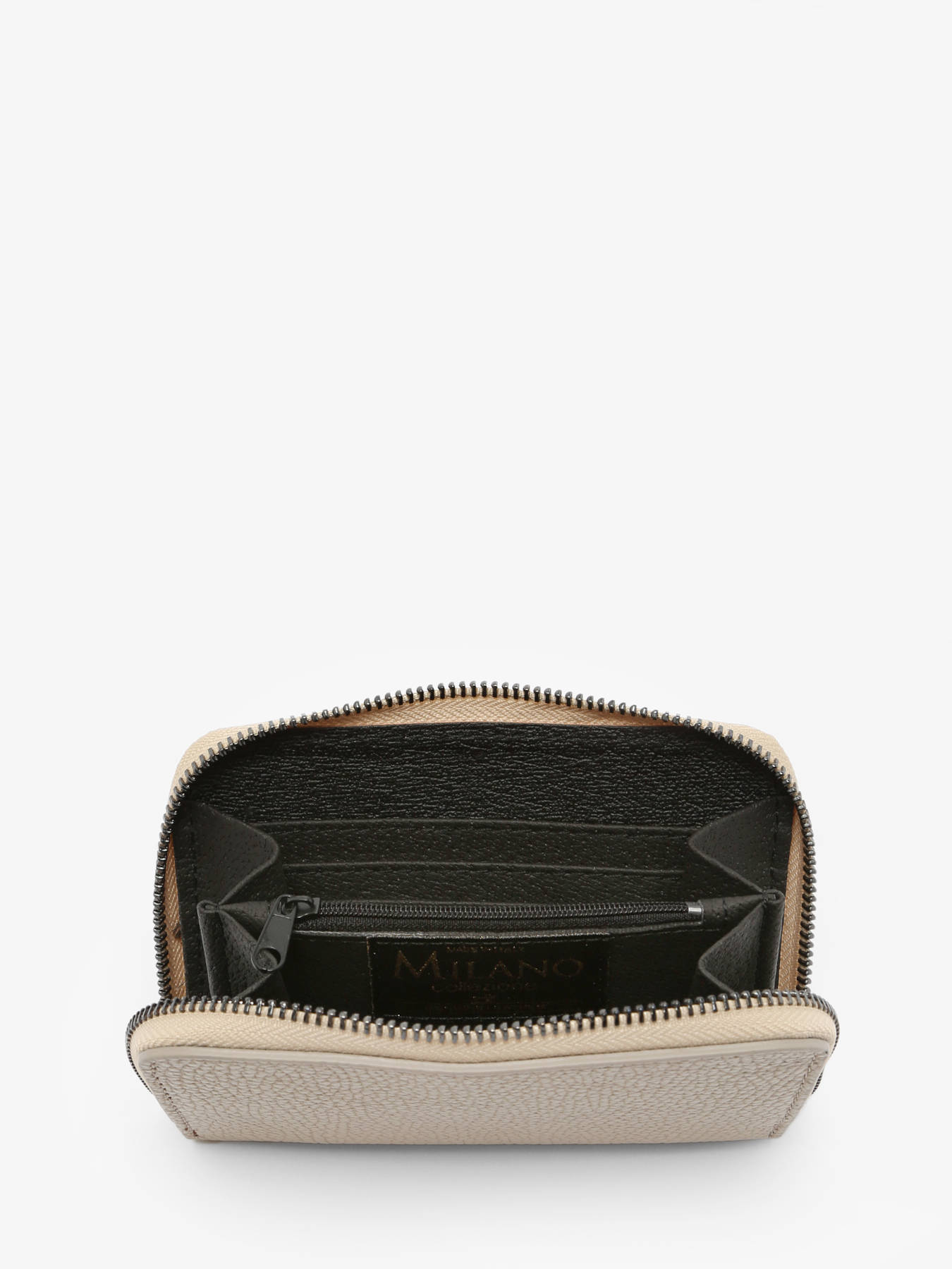 Deze praktische Caviar portefeuille van het merk Milano is gemaakt van soepel rundsleer met een gekorrelde textuur. Dit elegante accessoire sluit met rits, en is praktisch ingedeeld. Zo zijn er zes open steekvakjes voor kaarten voorzien, twee compartimenten voor cash én een handig ritsvakje voor muntstukken.