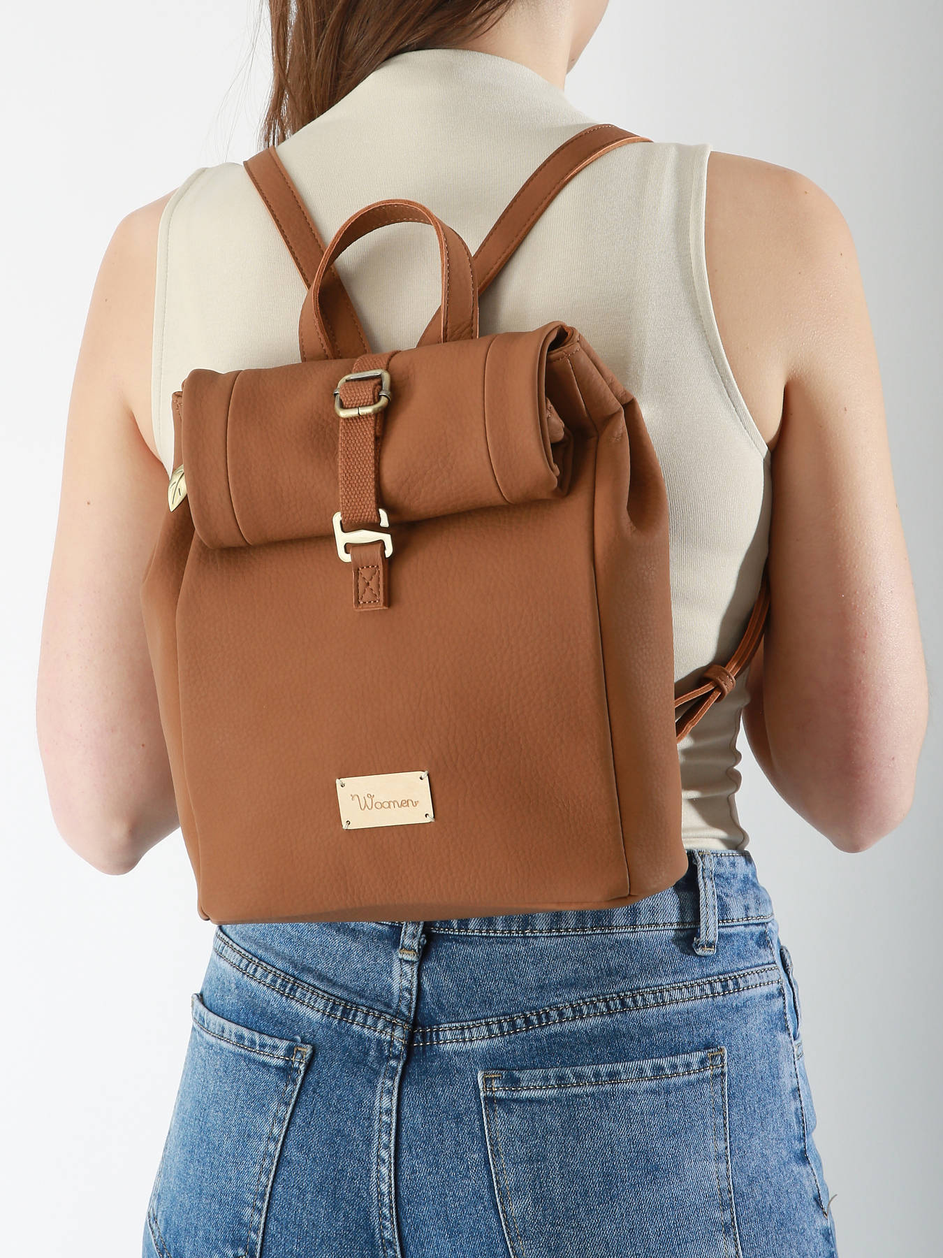 De WOOMEN rugzak uit de MUSCARI-lijn, gemaakt van gerecycled polyurethaan met een voering van katoen en linnen, heeft een nieuwe vorm met een rolltop-ontwerp. Compact en urban, het kan met de hand of op de rug gedragen worden, met verstelbare schouderbanden. Het heeft één compartiment, twee eenvoudige zakken, een zak met rits en nog een ristzak aan de achterkant. De sluiting combineert een rits, flap en slot voor extra veiligheid.
