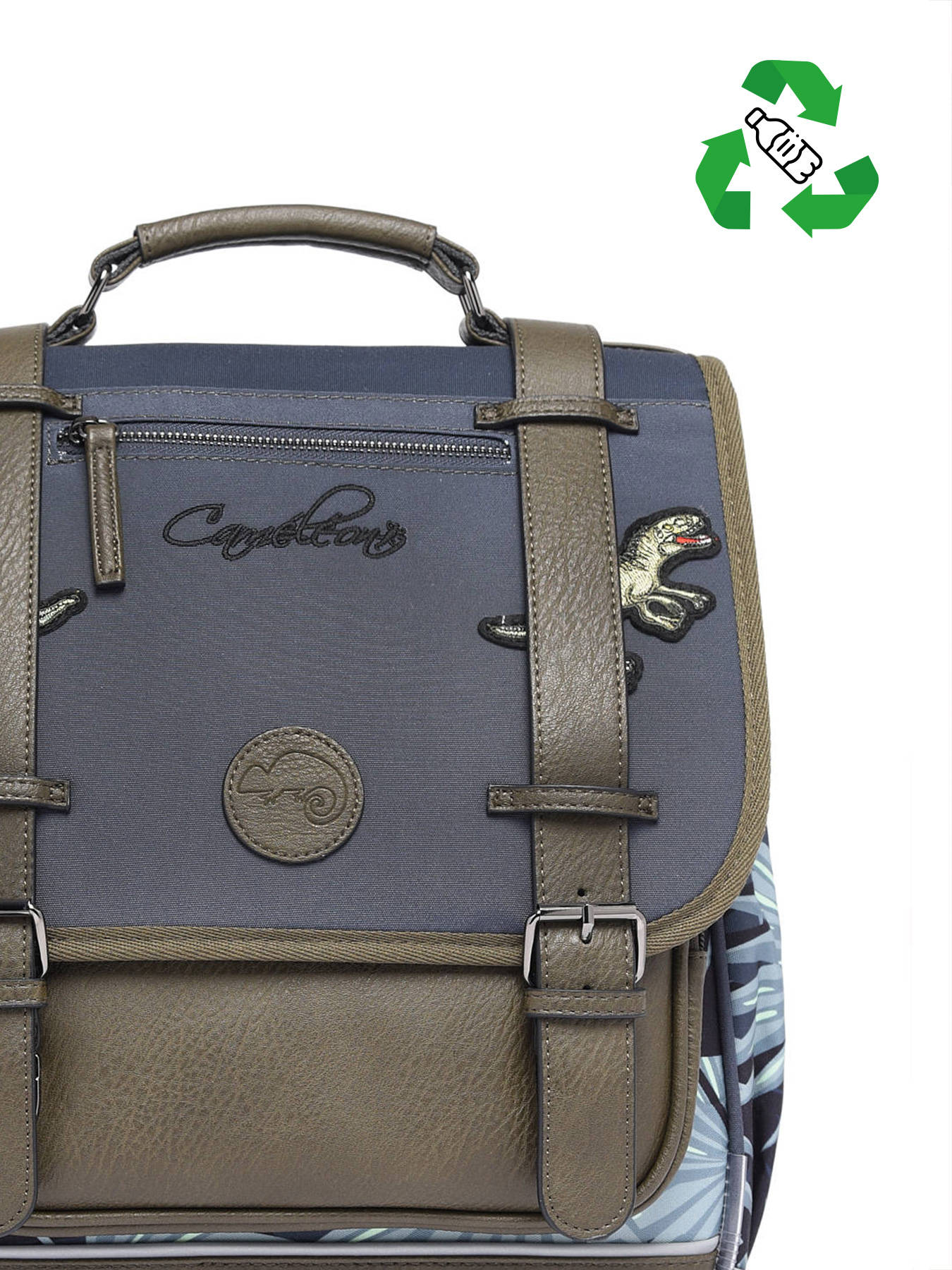 32 cm - 19 liter - 1.12 kg ~ Kinder rugzak van 39 cm uit de Vintage Urban-lijn van Caméléon, speciaal voor het basisonderwijs. We zijn dol op deze schooltas met een vernieuwd formaat, ideaal voor kleinere kinderen bijvoorbeeld. Deze tas is perfect voor groep 2 en 3. Het gewicht van de schoolspullen wordt beter verdeeld, wat de rug van de kinderen ontlast. De twee vakken van deze schooltas zijn perfect voor A4-schriften. Er is een speciale plek voor een liniaal en een zijvakje voor een drinkfles. Voor het comfort van de kinderen zijn de rug en schouderbanden gewatteerd en is de bodem van de tas verstevigd. Wat betreft veiligheid is de tas voorzien van reflecterende strepen. Gemaakt van waterafstotend gerecycled polyester.