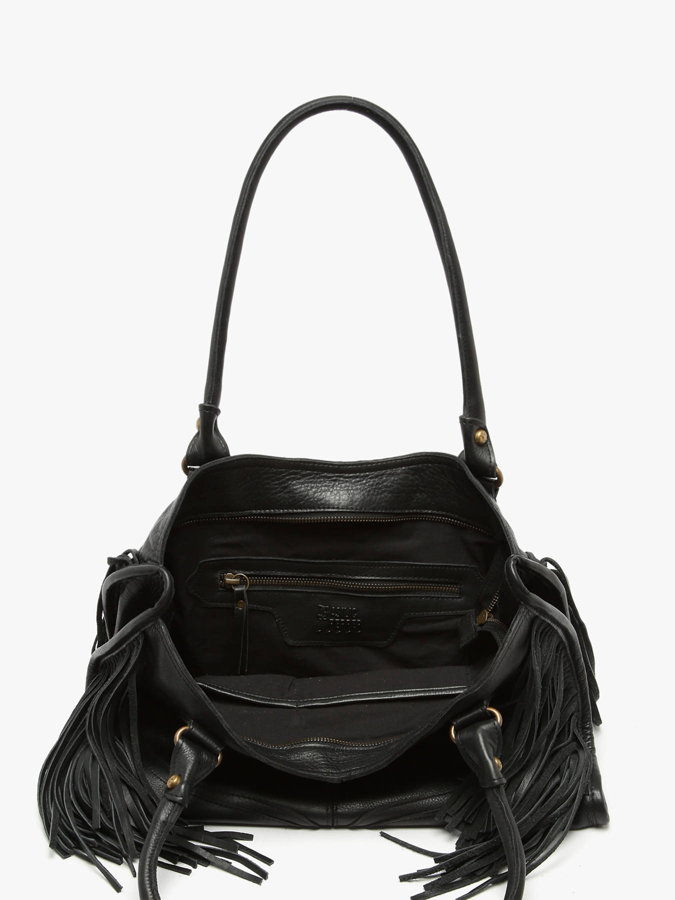 Schoudertas lune leder met franjes