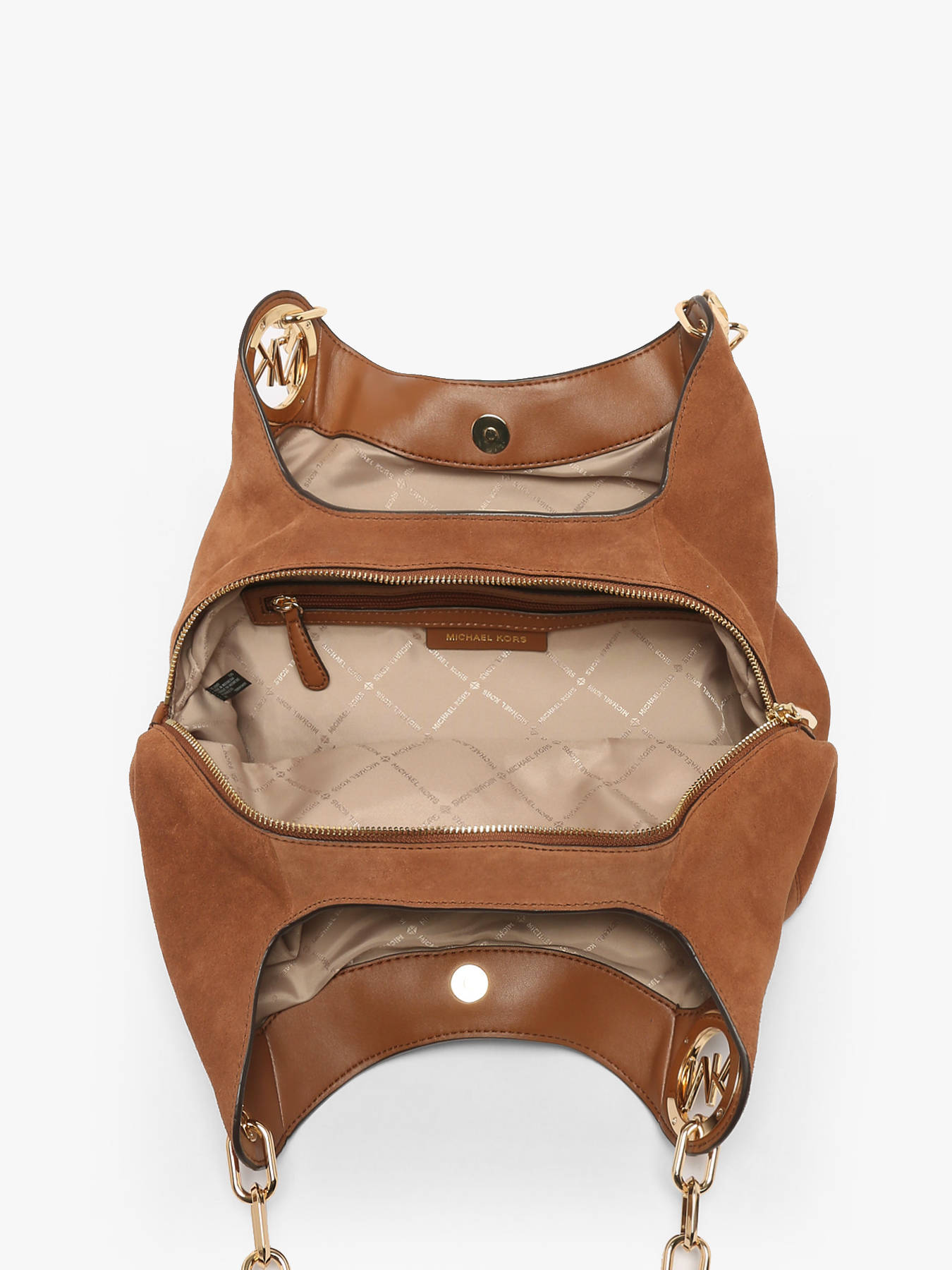 De Michael Kors schoudertas, gemaakt van soepel rundsleer, combineert tijdloze elegantie met dagelijkse functionaliteit. Het verfijnde ontwerp wordt aangevuld met een voorvak en twee achtervakken, ideaal om je essentials binnen handbereik te houden. De ritssluiting garandeert de veiligheid van je persoonlijke spullen, terwijl het 30 cm handvat een comfortabel draaggemak biedt, zowel in de hand als over de schouder. Het interieur bevat een groot centraal vak en een ritsvak voor een nette organisatie van je spullen. Dit model overtuigt door zijn strakke lijnen en onberispelijke afwerking, kenmerkend voor de Michael Kors-stijl. Chic en functioneel tegelijk, is het de perfecte metgezel om je outfits te verfraaien, zowel professioneel als casual.